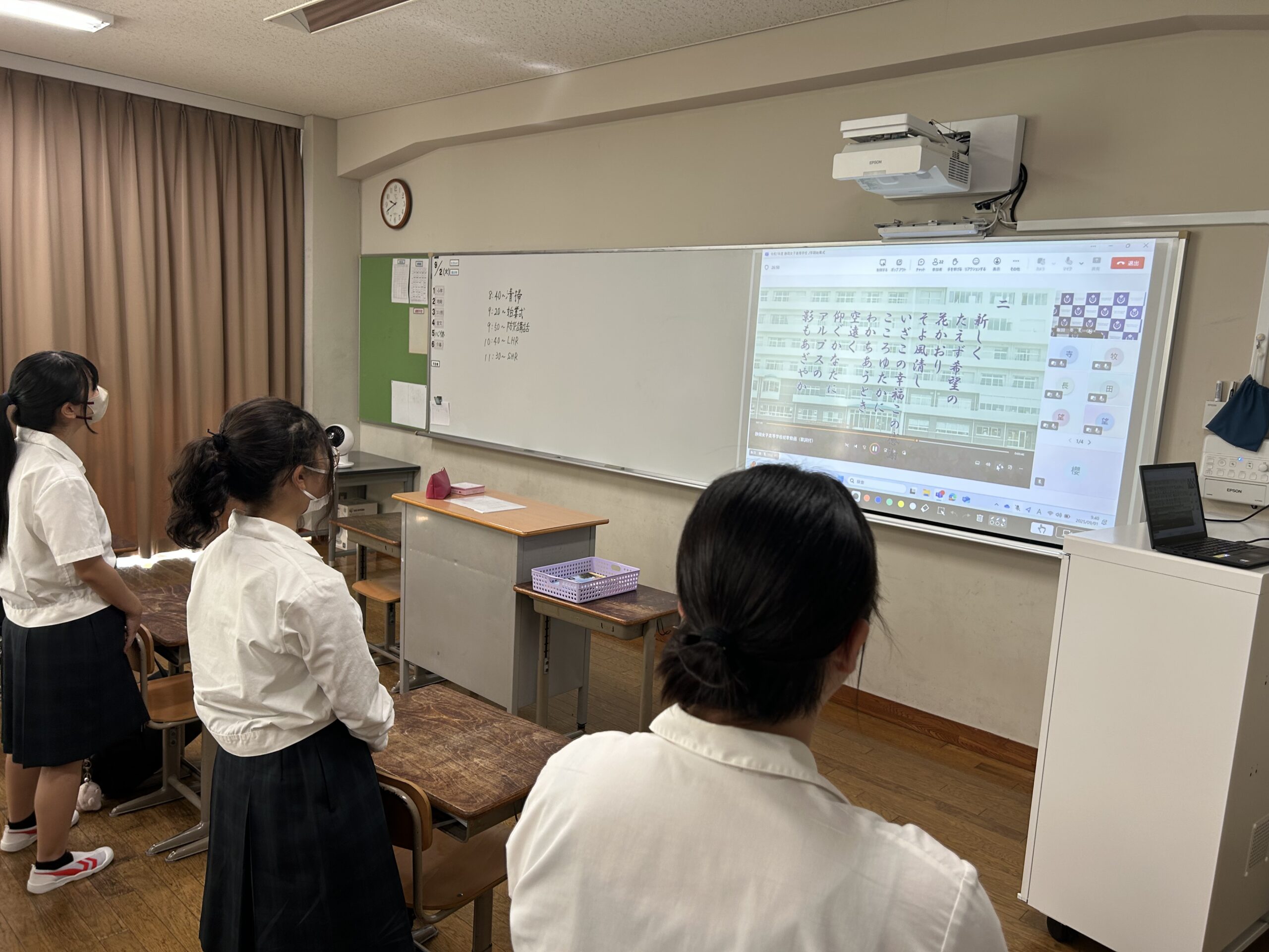 2025.09.01 令和7年度2学期始業式 その他 2学期始業式を行いました。暑さ対策のため、各クラスごと教室にてリモート形式で行いました。 インタビュースクリーンを新調し、より鮮明に見やすい配信ができました。 一覧へ戻る